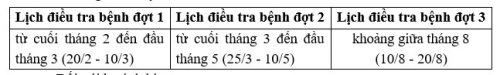 Điều tra theo dõi là biện pháp cần được thực hiện thường xuyên, có thể theo dõi trực tiếp, quan sát bằng mắt thường hoặc có thể dùng ống nhòm, lịch điều tra tham khảo bảng dưới đây: