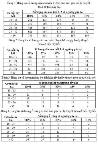 Điều tra số lượng nhộng, trứng, sâu non trên cành sau đó tính bình quân cho 1 cây, bình quân cho ô tiêu chuẩn và bình quân cho lâm phần.